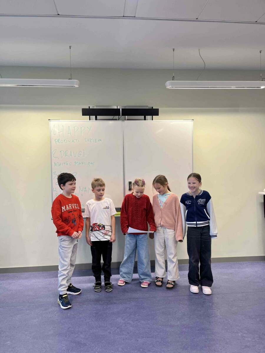 Skolēniem grupās bija jāuzsāk pirmie soļi uzņēmējdarbībā, radot idejas logo, nosaukumu, saukli un produktu. Nodarbības noslēgumā, skolēni mācījās prezentē savas idejas, iepazīstot “biznesa pitch”.
