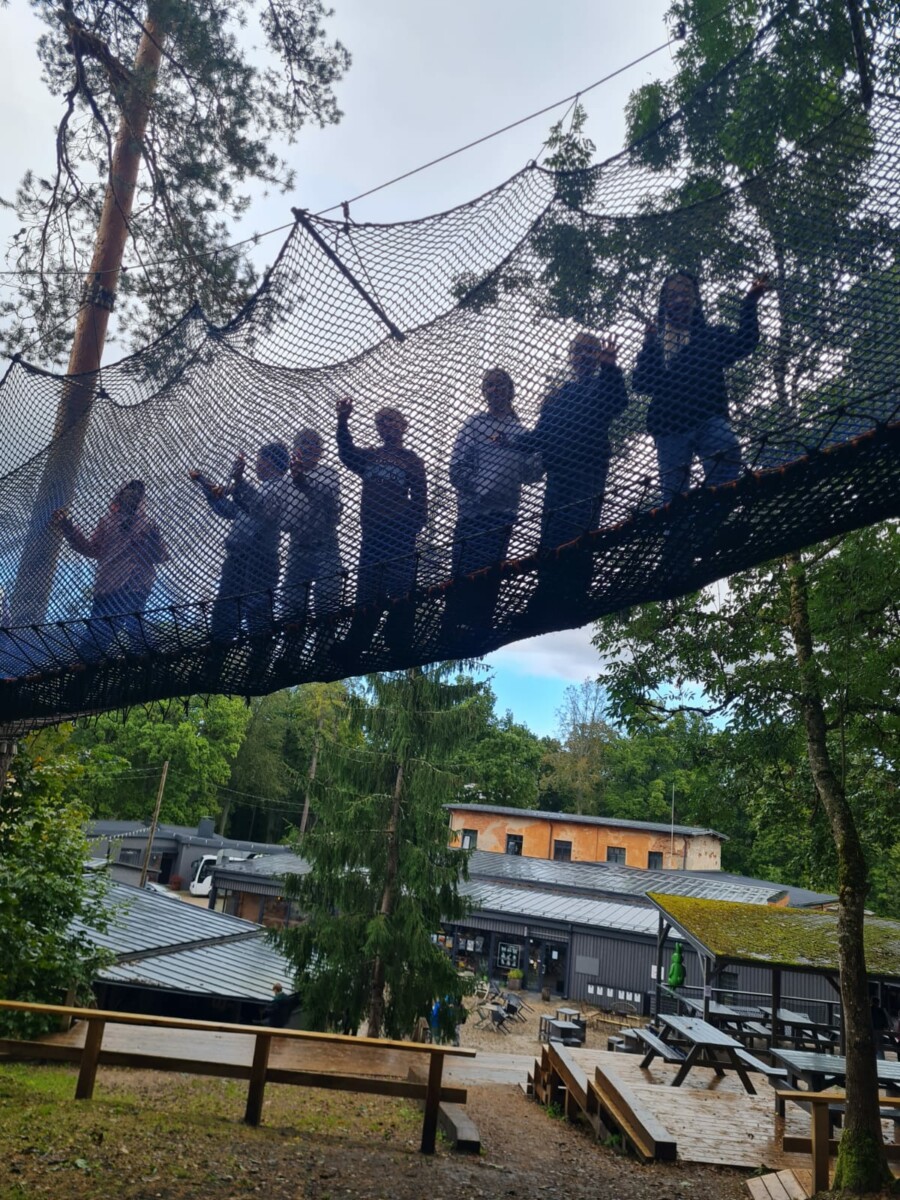 Liels piedzīvojums visiem bija arī pastaiga pa Zeit teritoriju, kur skolēni izmēģināja īpašos tīklus, kas sagādāja daudz prieka un jautrības. Pēc aktivitātēm klases kolektīvs devās uz kopīgām pusdienām, kur varēja aprunāties un dalīties dienas iespaidos.