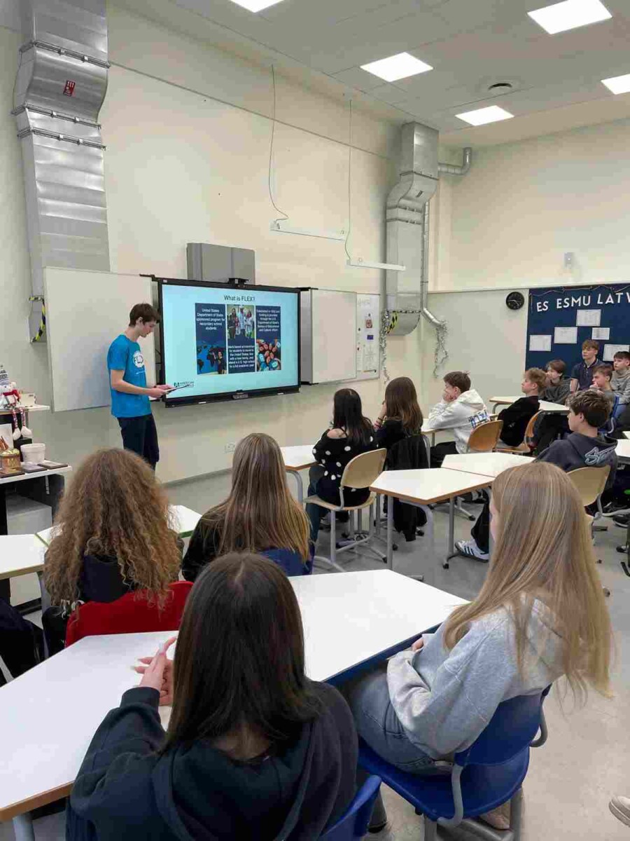 Ģirts Klieders izstāstīja savu FLEX pieredzi un dalījās iespaidos par pavadīto gadu ASV – par mācību procesu, ārpusstundu un ārpusskolas aktivitātēm, par viesģimeni un tās tradīcijām, kā arī par ilgām pēc mājām, kas daudziem ir visgrūtākais pārbaudījums šajā apmaiņas programmā, jo visu studiju laiku nav iespējams aizbraukt mājām, var tikai telefoniski vai tiešsaistē sazināties ar ģimeni vai rakstīt vēstules. Tāpat interesanti šķita skolēnu atlases kritēriji – svarīgi ir gan akadēmiskie sasniegumi, bet vēl svarīgāka ir iesaiste un dalība dažādās ārpusskolas aktivitātēs: mākslas vai mūzikas skolā, sporta treniņos vai interešu izglītības pulciņos. Tāpat, izvērtējot potenciālo apmaiņas skolēnu, tiek vērtēts gan paša kandidāta, gan viņa ģimenes locekļu veidotais digitālais saturs dažādos sociālajos tīklos – ja tiek konstatēts kas cilvēka godu un cieņu aizskarošs vai neatbilstošs Amerikas vērtībā, netiek izsniegt ieceļošanas vīza.