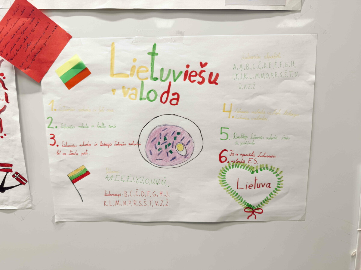 5.klases kopā ar skolotāju Sintiju Bērzkalnu gatavoja krāsainus plakātus, kuros atklāja Baltu valodu vēsturi, rakstību un interesantus faktus, pētīja valodas koku- Baltu valodas zaru, kā arī pilnveidoja savas prezentēšanas prasmes.