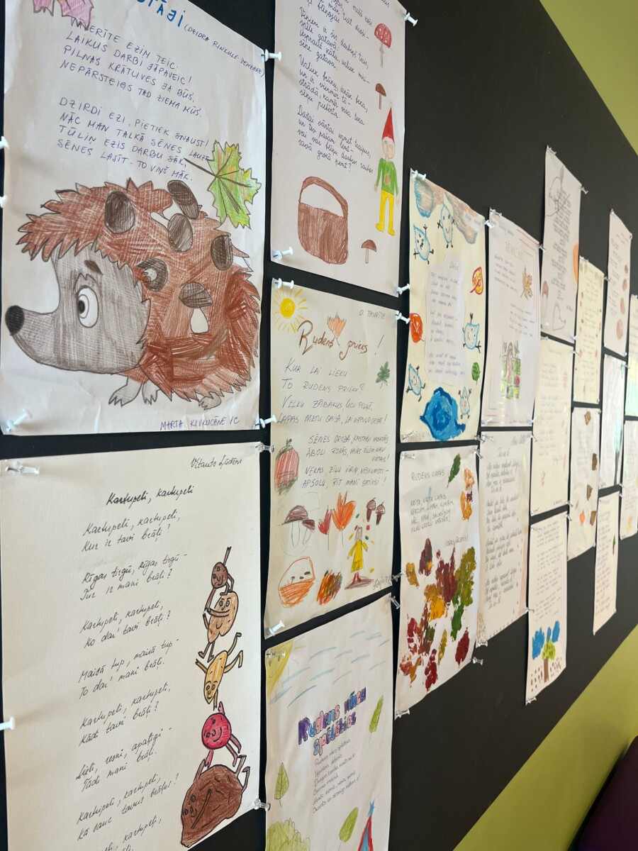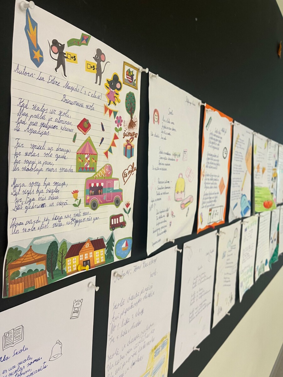 Ar dažādām un daudzveidīgām dzejas rindām sākumskolas gaiteņus izgrezno bērnu un vecāku kopdarbi.