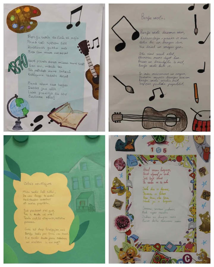 Dzejas dienām šogad – 60, Berģu Mūzikas un mākslas pamatskolai -155, tāpēc skolotāja Ieva Križevica svētku gaisotnē aicināja 6.b, 7.a, 7.b, 7.c un 9.b kl. skolēnus kopā ar draugiem pašiem radīt skolai daudz brīnišķīgu dāvanu – jautrus, nopietnus, pārdomu pilnus dzejoļus.