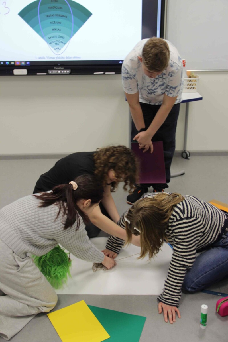 Literatūras skolotāja I.Križevica rosināja izprast saules un darba saistību saulgriežu svētku rituālos, pētot un kritiski atlasot informāciju dažādos avotos, lai sameklēto informāciju varētu izmantot kalendāra veidošanai. Nozīmīgi kopīgi bija vienoties par kalendāra lielumu, iekļaujamo vienību skaitu un kritērijiem, kas tiks izmantoti darba vērtēšanai.