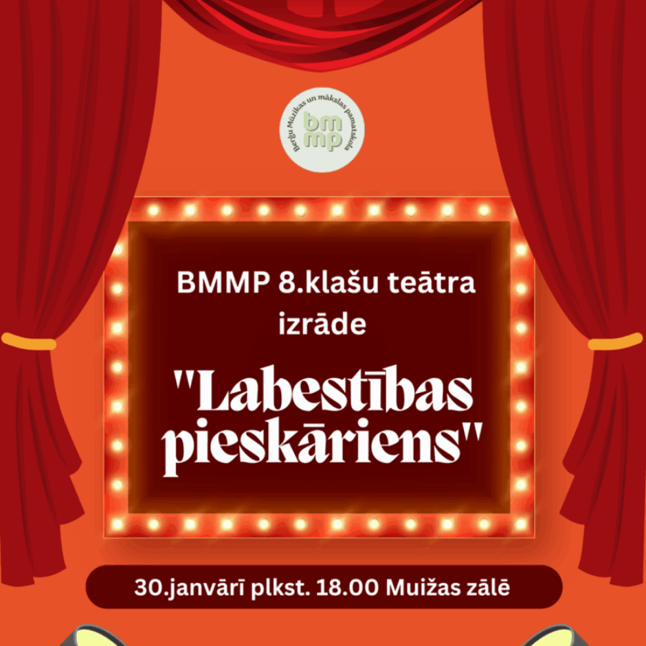 8. a un 8.b klases skolēni ielūdz ik vienu uz teātra izrādi “Labestības pieskāriens” š. g. 30.janvārī, plkst. 18.00 Muižas zālē.