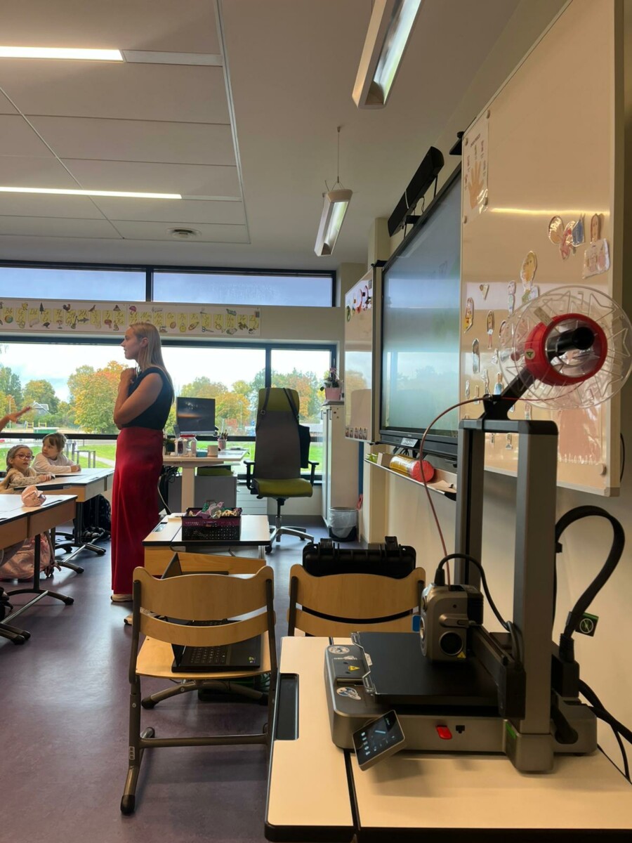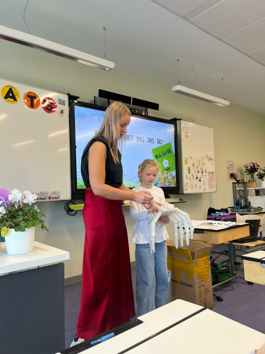 Savukārt, Enijas mamma dalījās pieredzē un stāstīja skolēniem par 3D printēšanu, modelēšanu un skenēšanu. Prezentācijas laikā klasei tapa arī suvenīrs. Skolēniem bija iespēja apskatīt 3D printeri, iepazīt skenēšanas rīkus, uzzināja interesantus faktus par ChatGPT un kā paši skolēni var jau to izmantot.