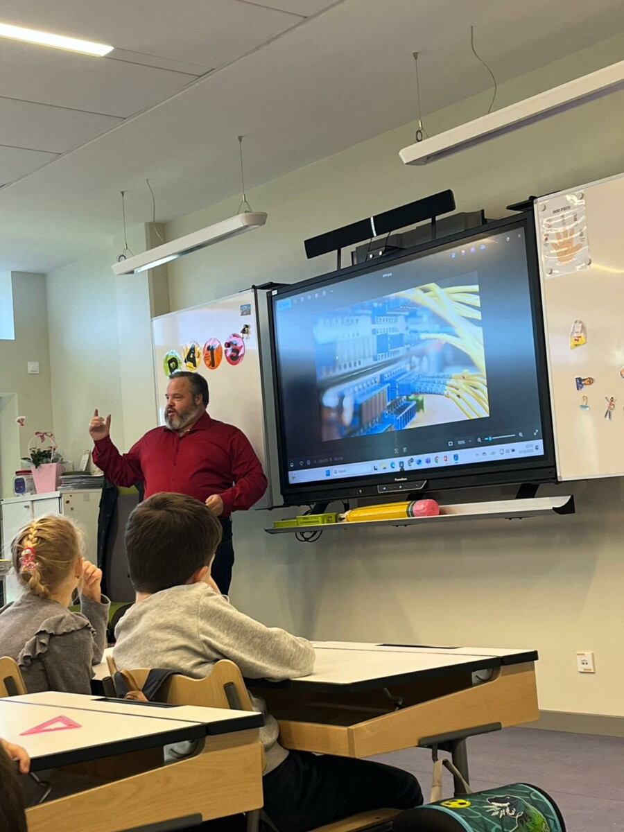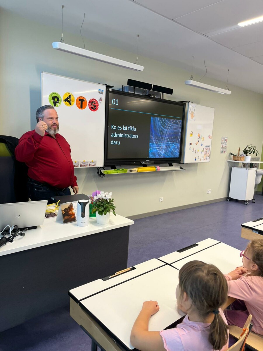 Emīlijas tētis stāstīja par tīkla drošību un administrēšanu, kurš šajā profesijā strādā jau vairāk kā 20 gadus. Viņš pastāstīja dažādus interesantus faktus un smieklīgu atgadījumu, kā arī atgādināja skolēniem par drošību internetā.