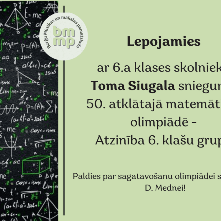 Lepojamies ar 6.a klases skolnieka Toma Siugala sniegumu 50. atklātajā matemātikas olimpiādē – Atzinība 6. klašu grupā!