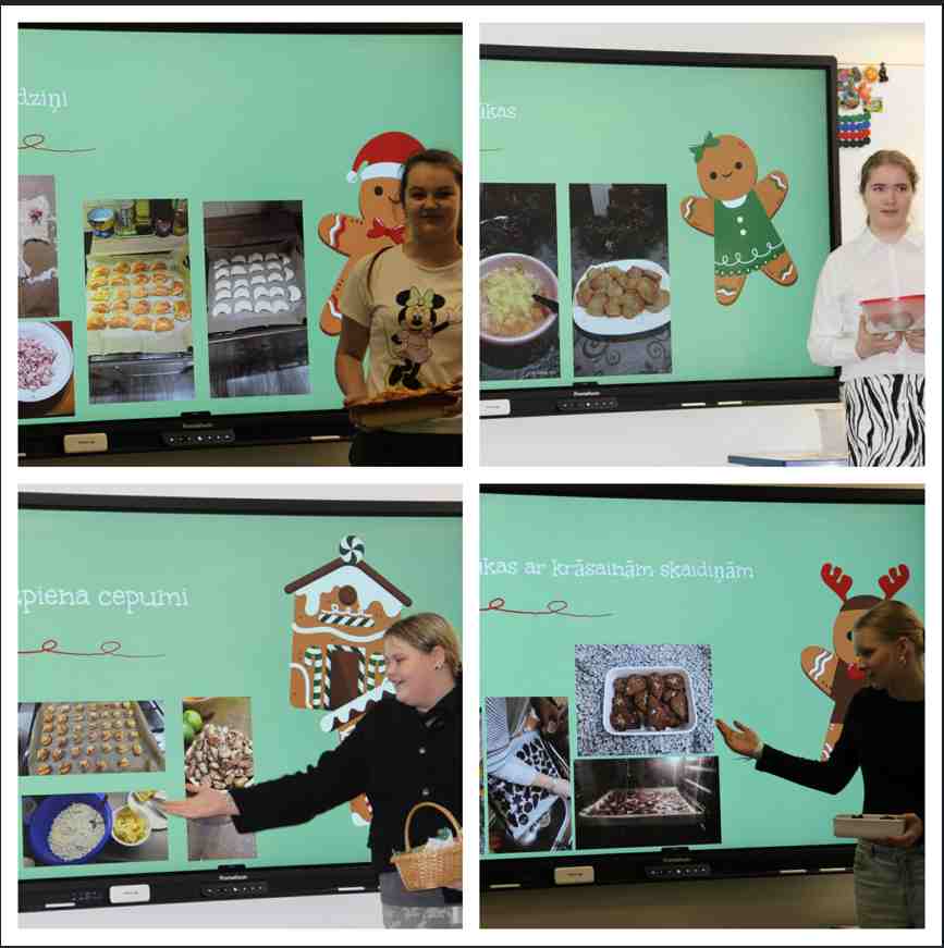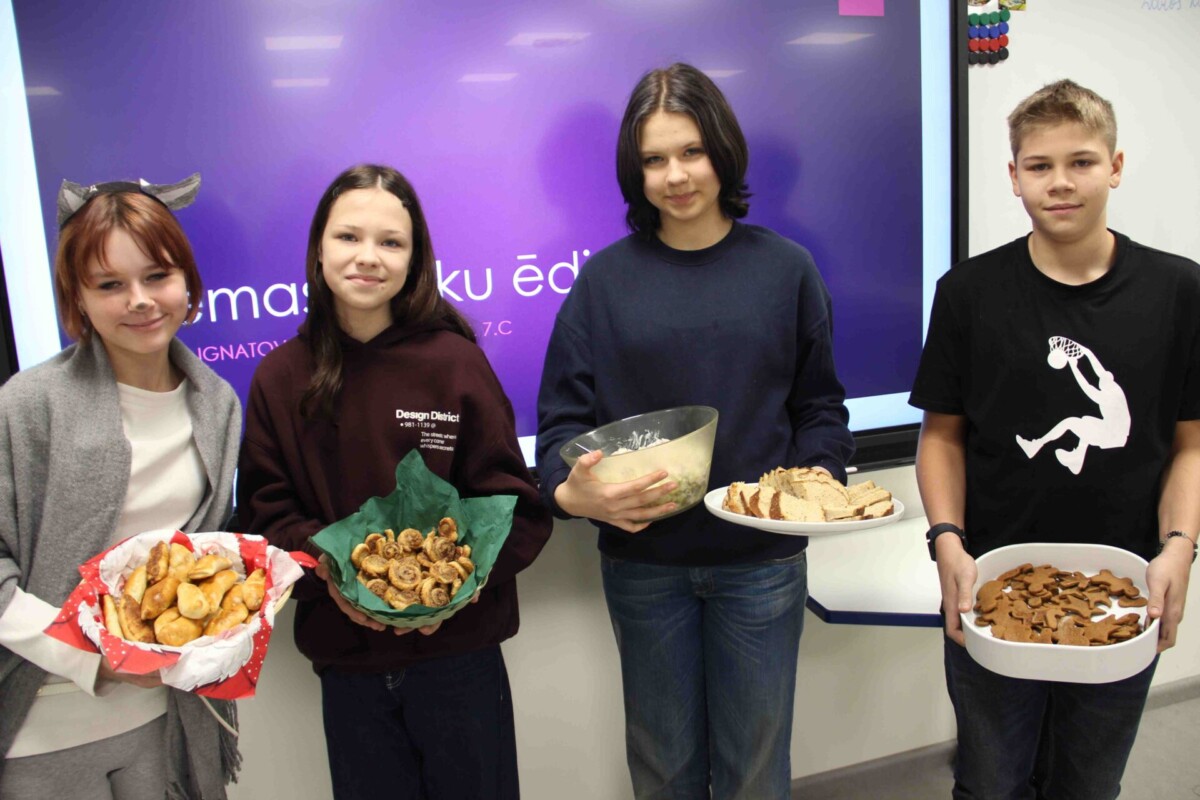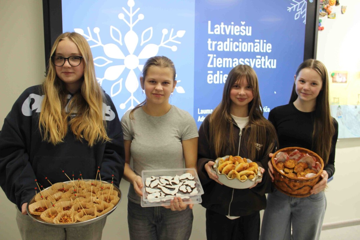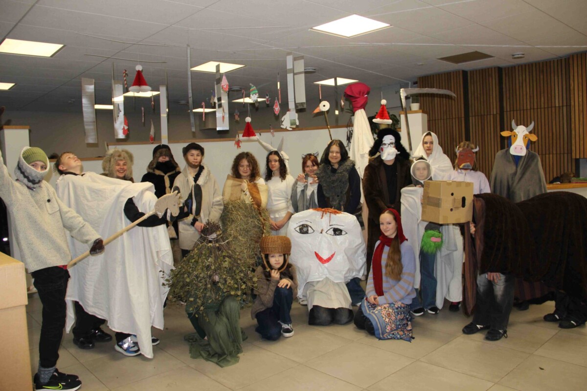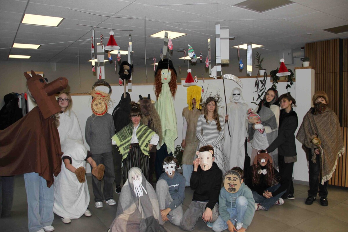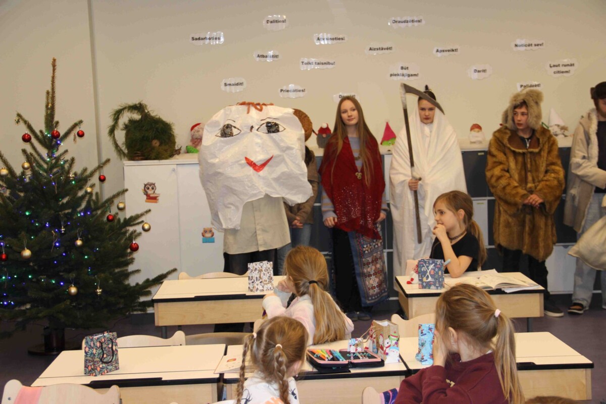 7.a, 7.b, 7.c kl. skolēni literatūras stundās kopā ar skolotāju Ievu Križevicu cītīgi gatavojās un iepazina gadskārtu tradīcijas, īpašu vērību veltot Ziemassvētkiem, tāpēc izrotāja kabinetu ar pašgatavotiem puzuriem. Skolēni citādā pārbaudes darbā prezentēja ne tikai projekta darbu par gadskārtu kalendāru, bet arī citus projekta darbus atrādīja klases biedriem, ko centās iesaistīt praktiskās darbībās, piemēram, Ziemassvētku ēdienu prezentācijā un degustēšanā, izkustēties un iemācīties rotaļas un dančus, atsaukt atmiņā un iemācīties jaunas Ziemassvētku tautasdziesmas, iepazīties ar zīlēšanas tradīcijām un pašgatavotiem rotājumiem eglītei un telpām, kā arī iepazīt kristīgās pasaules Ziemassvētku tradīcijas. Skolēni izvēlējās sev piemērotāko, tīkamāko masku, kurai noskaidroja simbolisko nozīmi, kā arī paši gatavoja tās, lai varētu doties maskotā bluķa gājienā pa skolu pie skolas biedriem, skolotājiem, kurus pārbaudīja ar latviešu tautas mīklām un atjautības uzdevumiem, vērsa uzmanību ticējumiem, kā arī ieskandināja skolas gaiteņus ar latviešu Ziemassvētku tautasdziesmām.