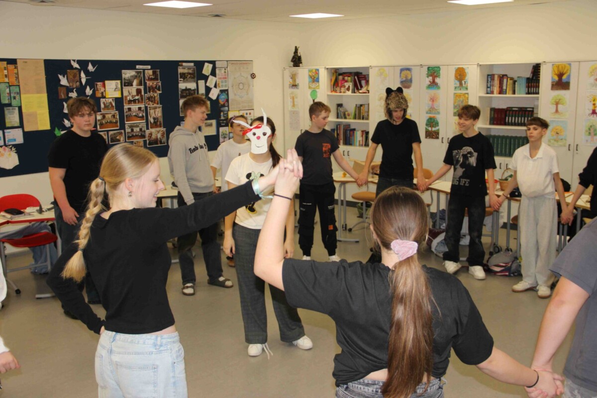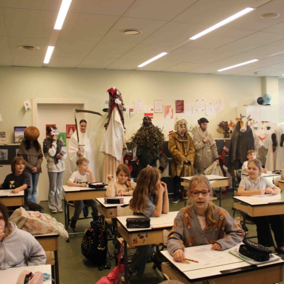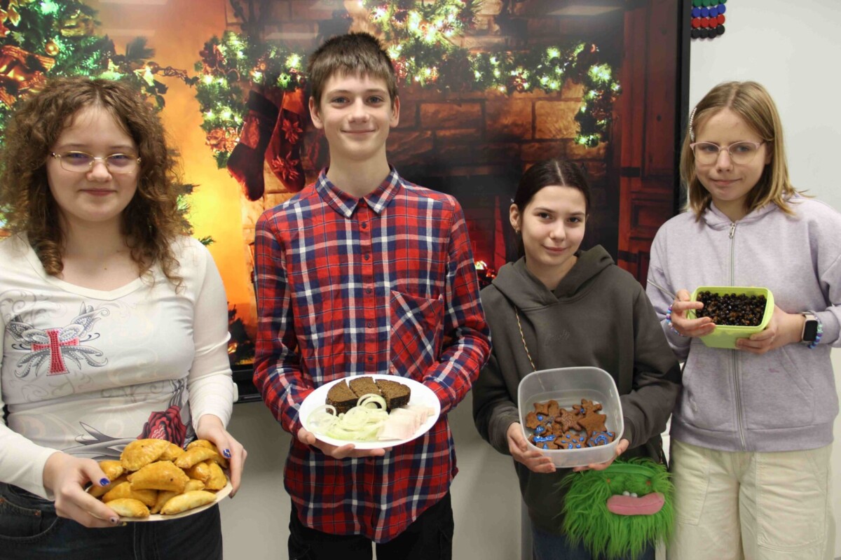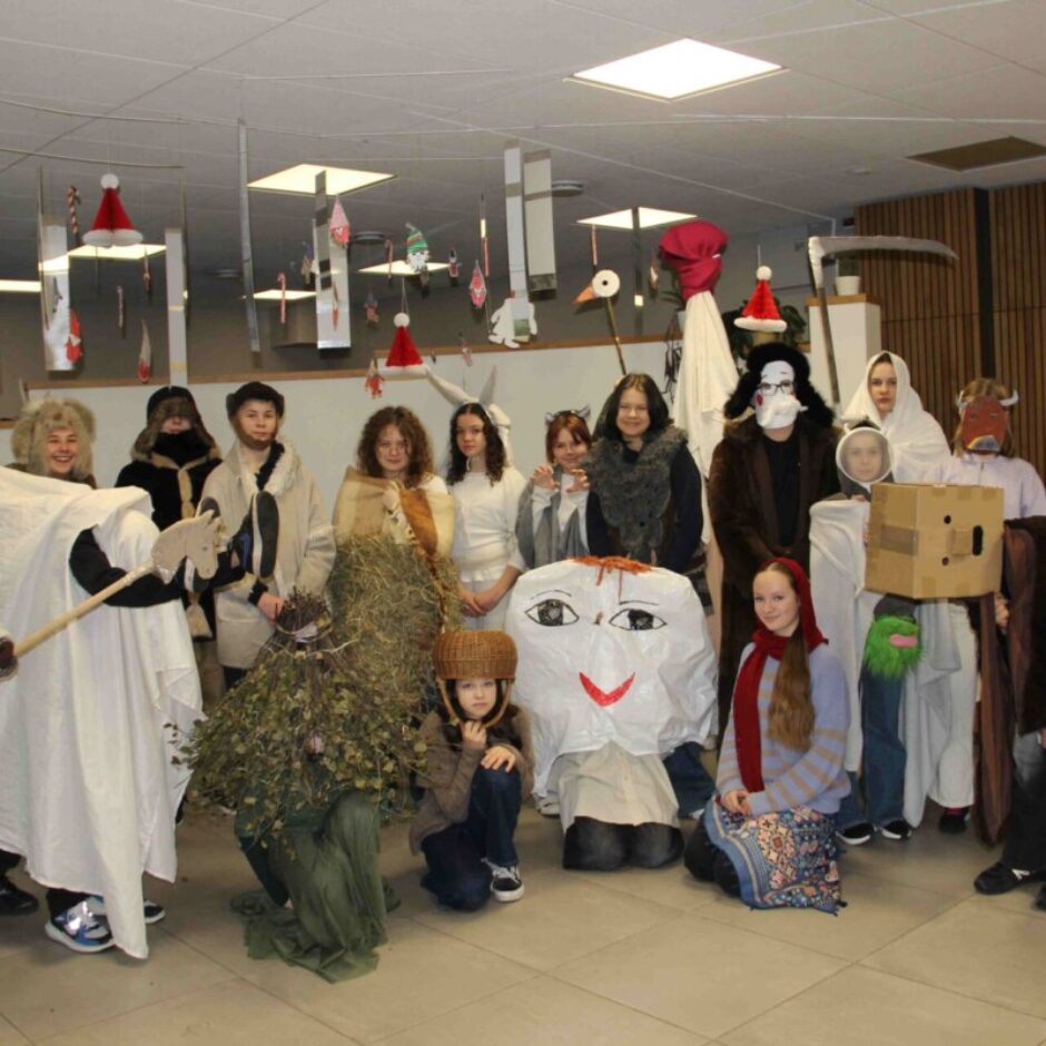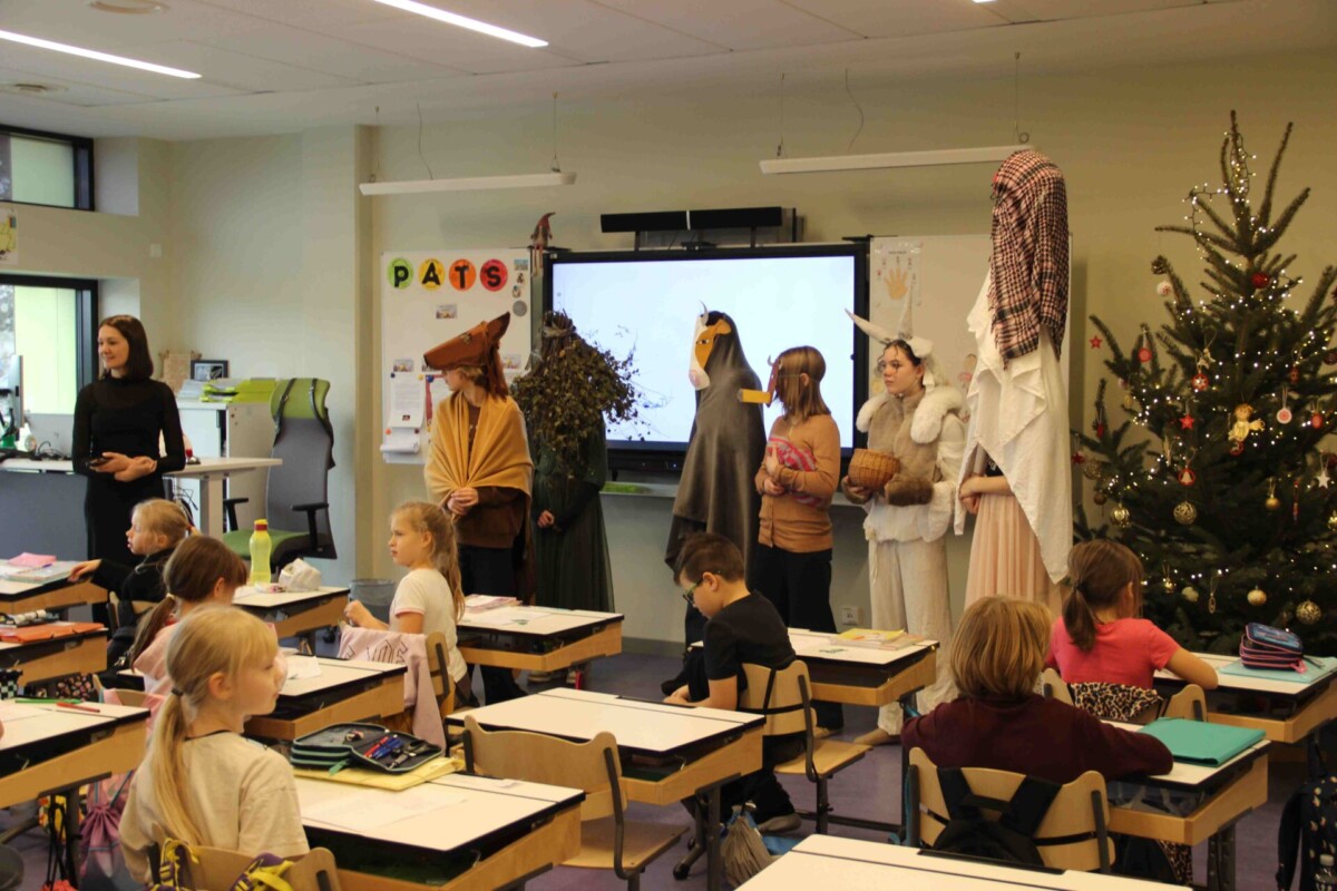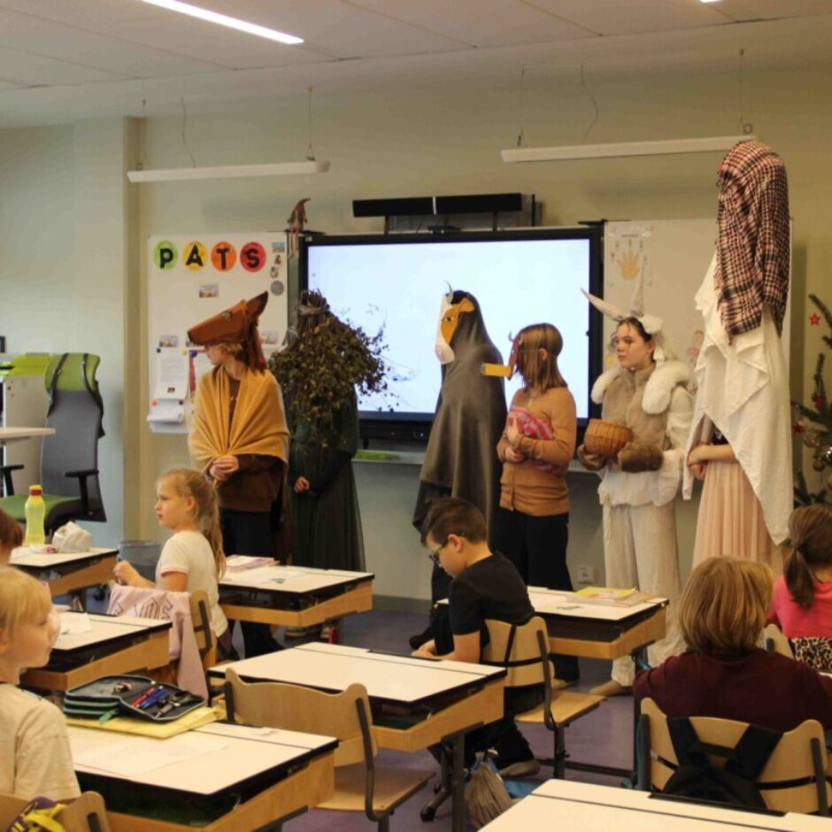 7.a, 7.b, 7.c kl. skolēni literatūras stundās kopā ar skolotāju Ievu Križevicu cītīgi gatavojās un iepazina gadskārtu tradīcijas, īpašu vērību veltot Ziemassvētkiem, tāpēc izrotāja kabinetu ar pašgatavotiem puzuriem. Skolēni citādā pārbaudes darbā prezentēja ne tikai projekta darbu par gadskārtu kalendāru, bet arī citus projekta darbus atrādīja klases biedriem, ko centās iesaistīt praktiskās darbībās, piemēram, Ziemassvētku ēdienu prezentācijā un degustēšanā, izkustēties un iemācīties rotaļas un dančus, atsaukt atmiņā un iemācīties jaunas Ziemassvētku tautasdziesmas, iepazīties ar zīlēšanas tradīcijām un pašgatavotiem rotājumiem eglītei un telpām, kā arī iepazīt kristīgās pasaules Ziemassvētku tradīcijas. Skolēni izvēlējās sev piemērotāko, tīkamāko masku, kurai noskaidroja simbolisko nozīmi, kā arī paši gatavoja tās, lai varētu doties maskotā bluķa gājienā pa skolu pie skolas biedriem, skolotājiem, kurus pārbaudīja ar latviešu tautas mīklām un atjautības uzdevumiem, vērsa uzmanību ticējumiem, kā arī ieskandināja skolas gaiteņus ar latviešu Ziemassvētku tautasdziesmām.