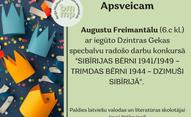 2. un 3. vieta svešvalodu jomas (krievu valodas) alternatīvās olimpiādes/skatuves runas konkursā “Sniegpulkstenīte”
