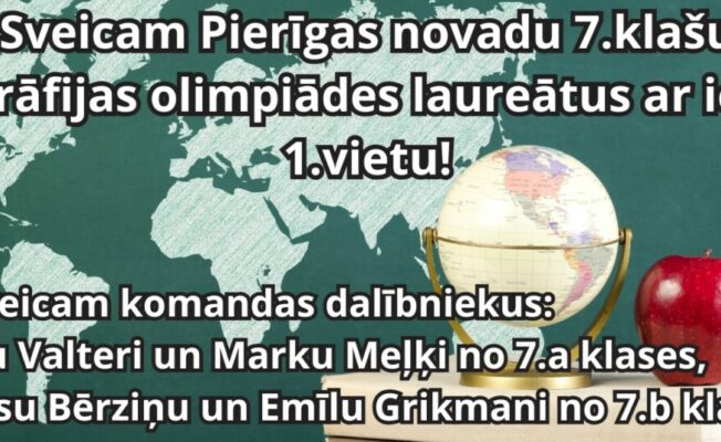 Sveicam 7. klašu ģeogrāfijas olimpiādes laureātus!