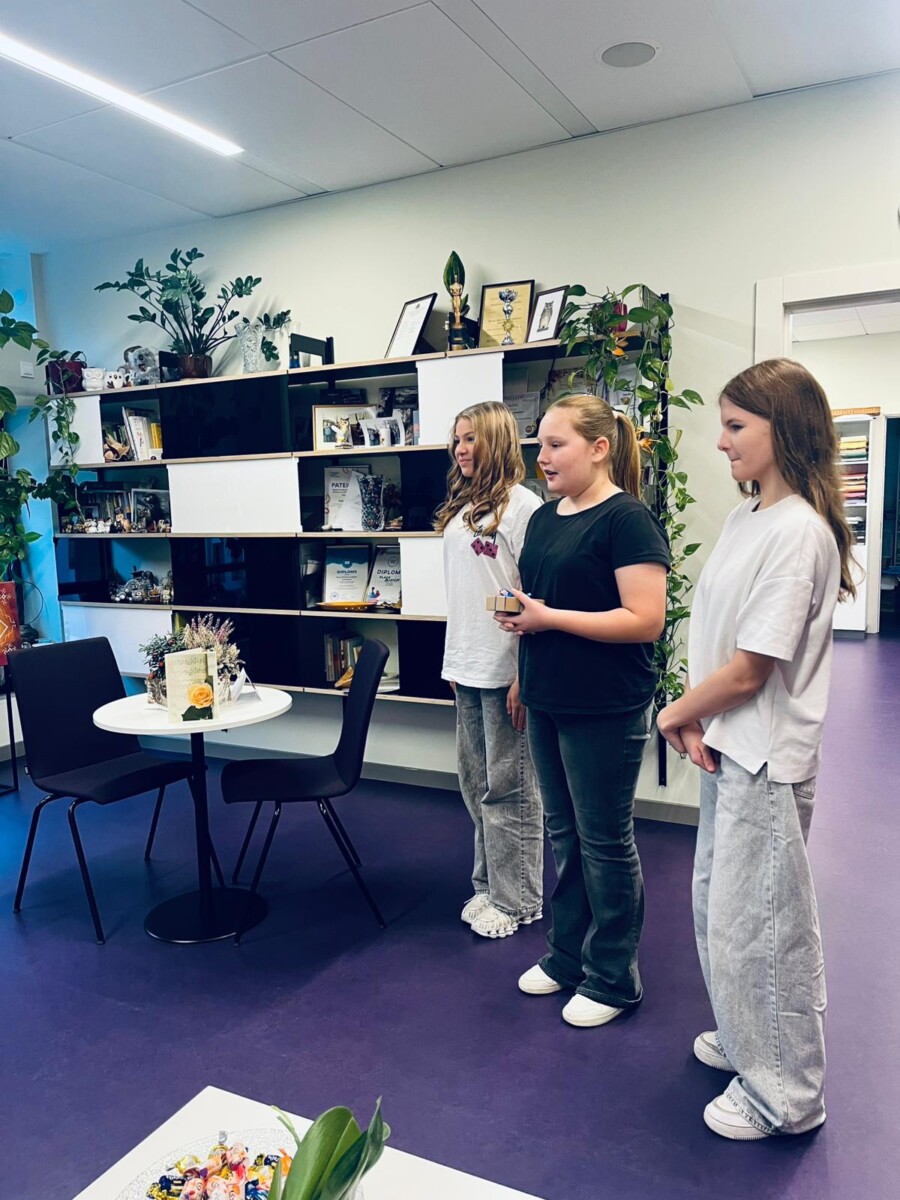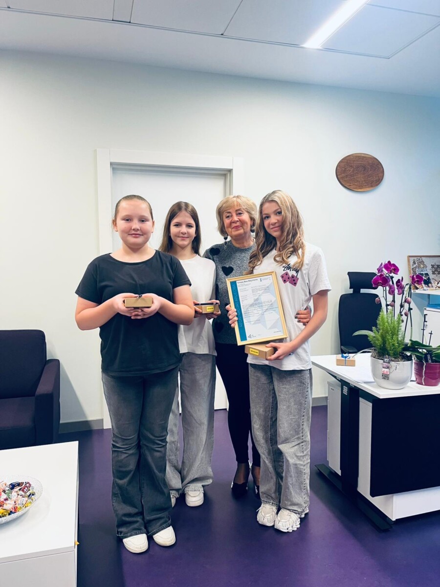 Esam priecīgi, ka šajā mācību gadā ir izveidojies pirmais Skolēnu mācību uzņēmums (SMU), kuru pārstāv 6.c klases skolnieces Estere Bloma, Patrīcija Neimane un Megija Nette. Šodien meitenes pie skolas direktores saņēma SMU reģistrācijas apliecību un uzmundrinošus vārdus.