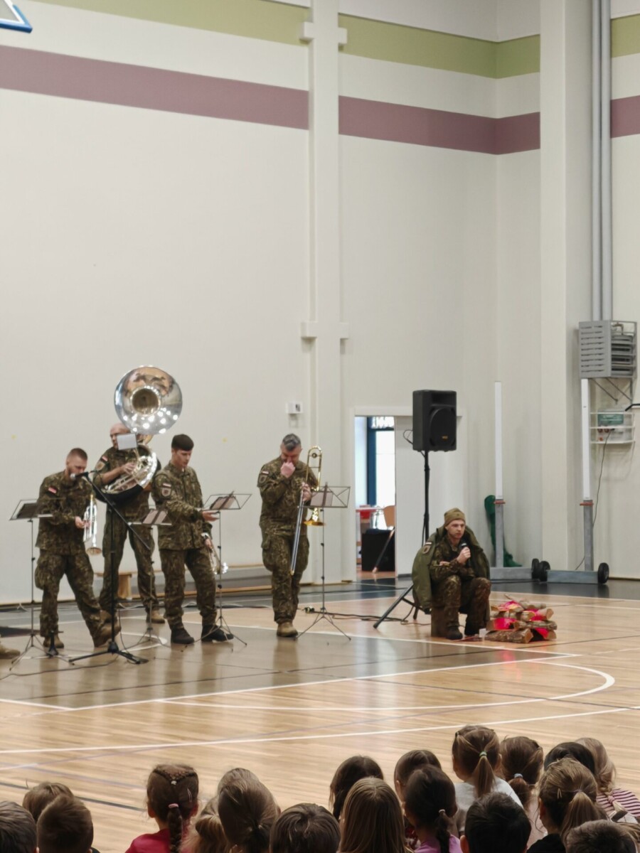 Skolā šodien valdīja īpaša noskaņa – Barikāžu atceres pasākums pulcēja visu skolas saimi kopīgā muzikālā piedzīvojumā. Nacionālo bruņoto spēku Štāba orķestra skanējums savija patriotismu ar jauneklīgu enerģiju, radot gan svinīgu, gan priecīgu gaisotni. Bērni gan dziedāja, gan dejoja, gan klausījās pārdomātā karavīru stāstījumā par mūsu vēsturi. Paldies LNB Štāba orķestrim, kā arī skolas darbiniekiem, kuri piedalījās šī pasākuma īstenošanā!