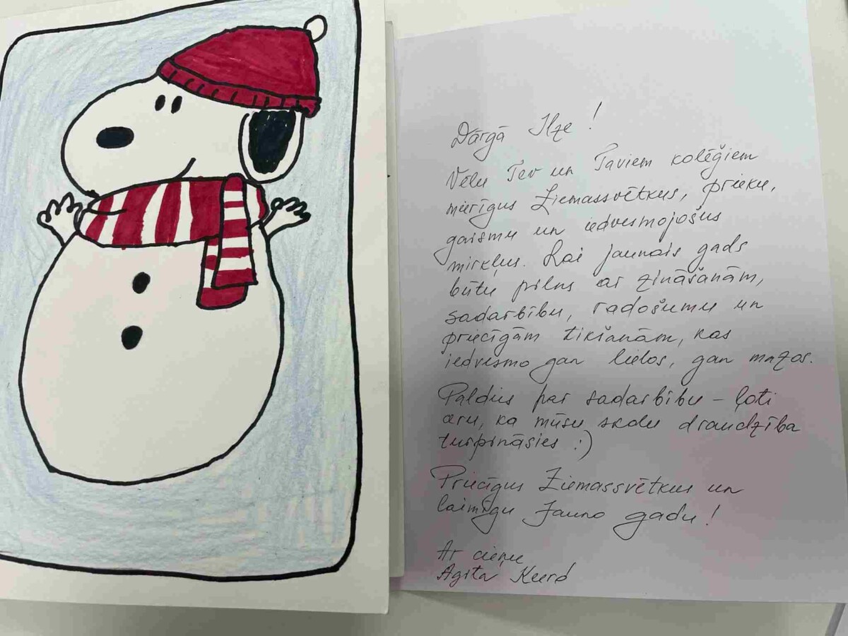 17.decembrī 6.b kl.skolēni, kl.audz. I.Krevica, skolas direktore I.Briņķe un latviešu valodas, literatūras skolotāja I.Križevica saņēma burvīgus Ziemassvētku sveicienus no sadraudzības skolas Igaunijā (Pärnu Rääma Põhikool).