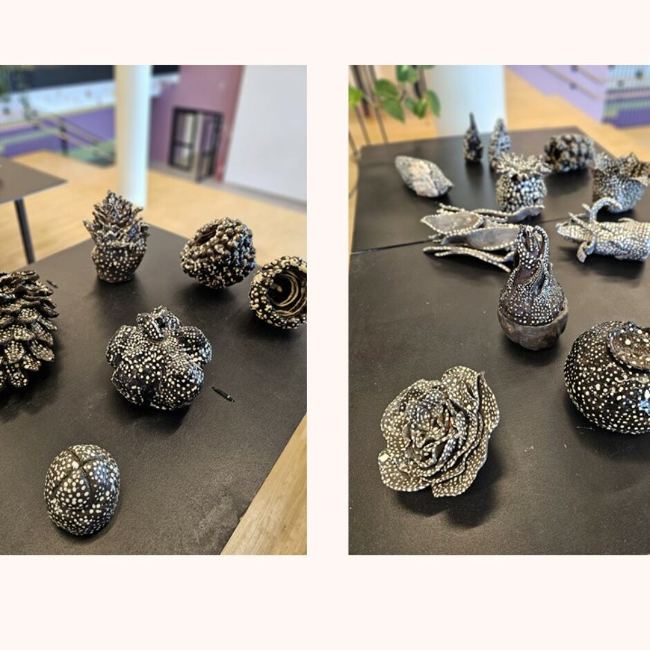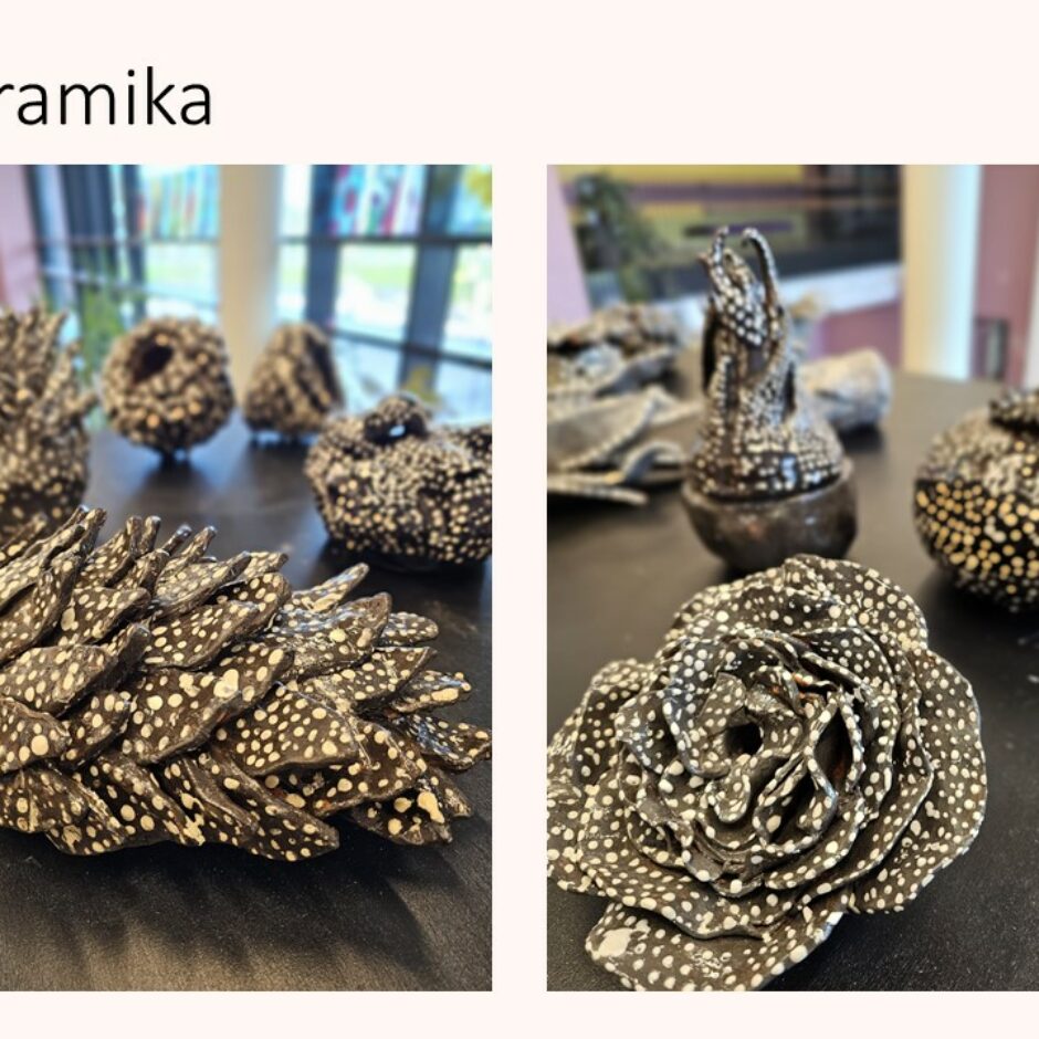 Skolotāja Kristīne Niedra dizaina pamati, Dagne Ventiņa gleznošana, Diāna Mežecka keramika, Ramona Pēkšēna