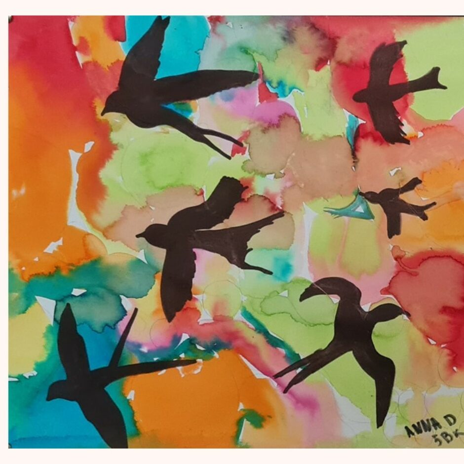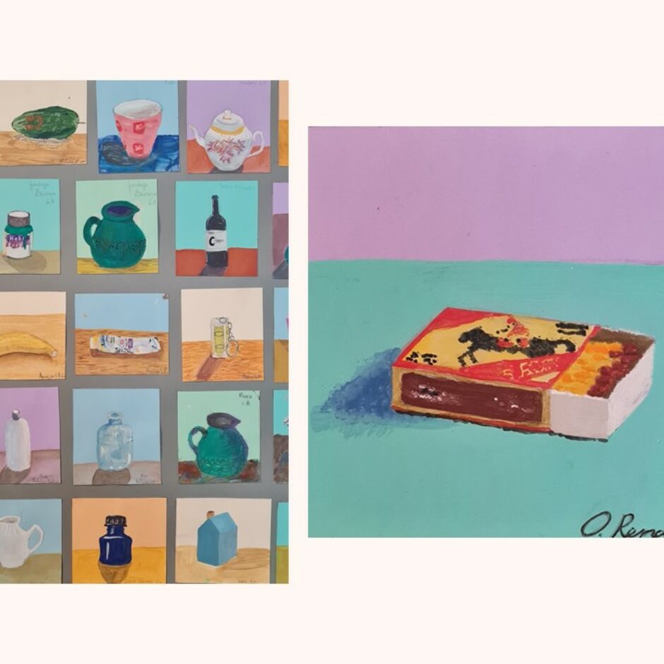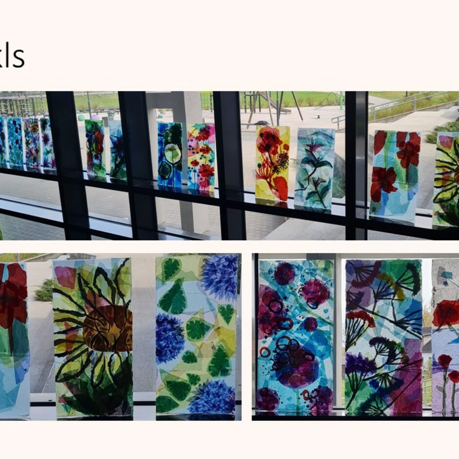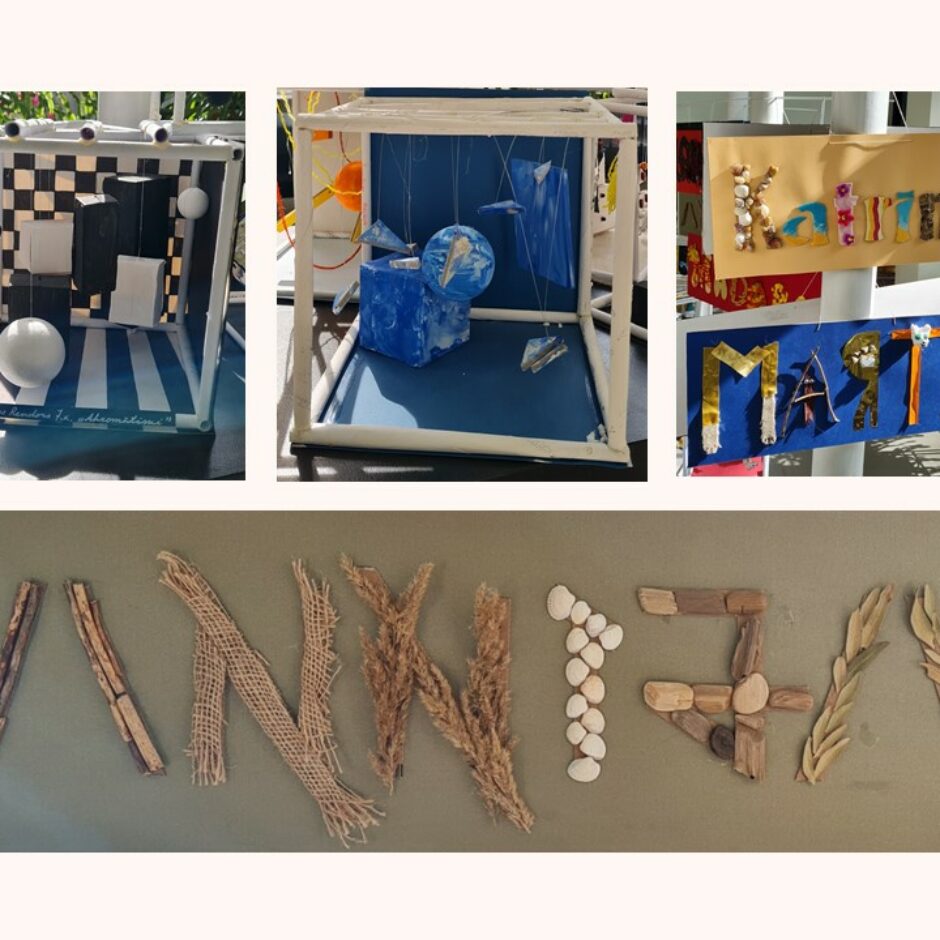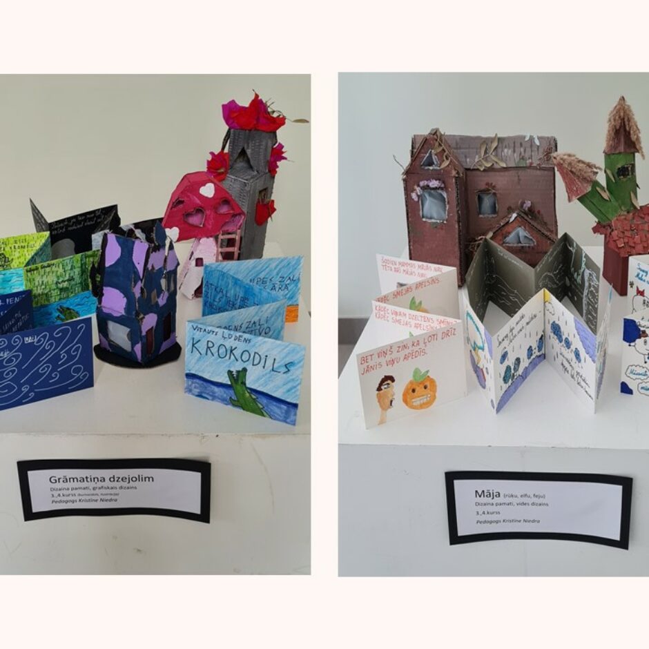 Berģu mākslas nodaļas audzēkņu darbu izstāde pamatskolas telpās.