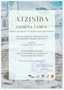 Apsveicam ar panākumiem Starptautiskajā konkursā “Es dzīvoju pie jūras”.