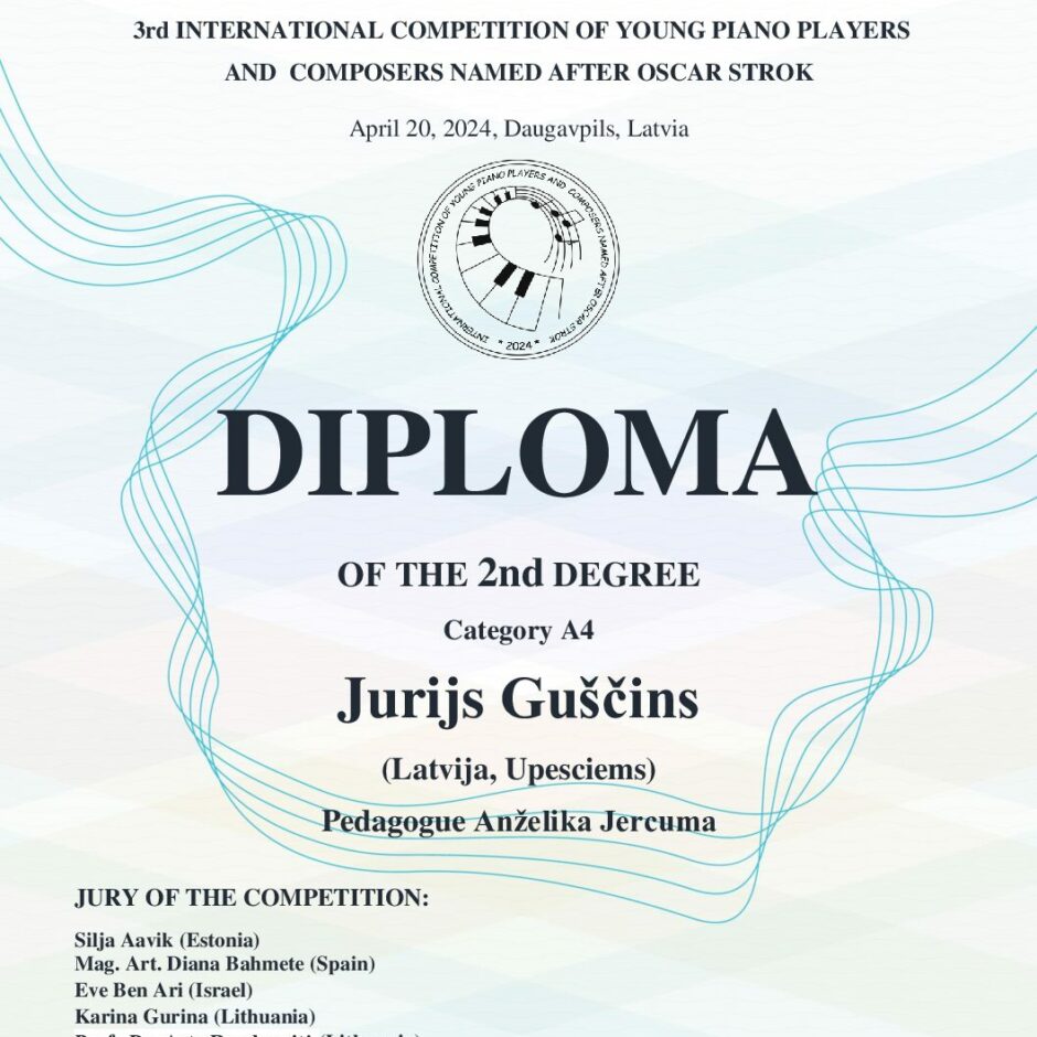 20. aprīlī BMMP 6. klavieru klases audzēkņi Kristiāns Ilguns un Jurijs Guščins piedalījās III Starptautiskajā Oskara Stroka pianistu un jauno komponistu konkursā un izcīnīja II vietas katrs savā vecuma grupā. Dalībnieku skaits bija liels – 144 dalībnieki.